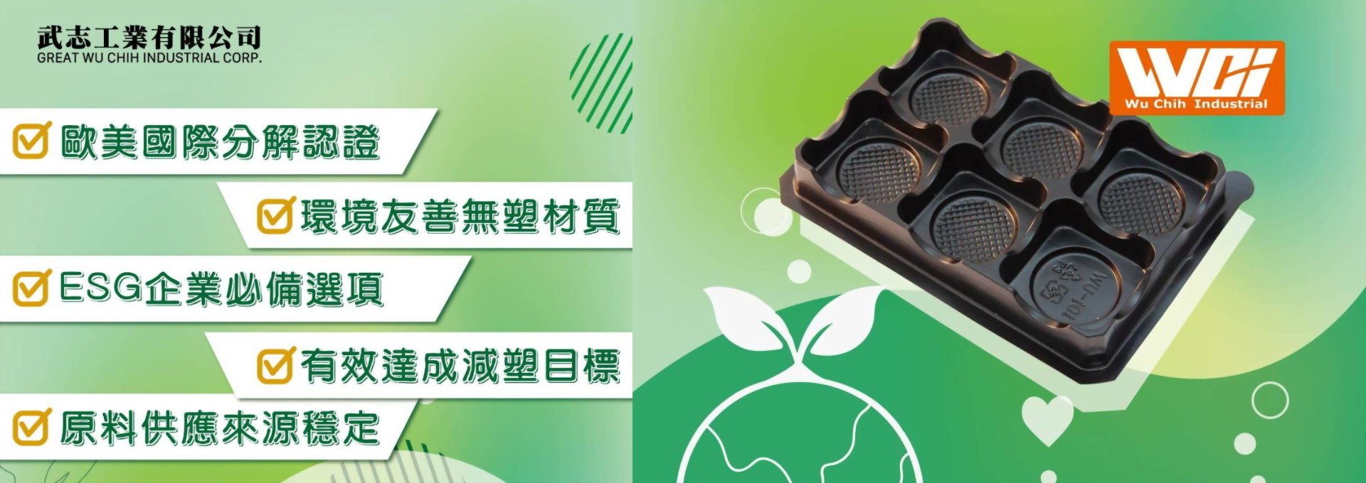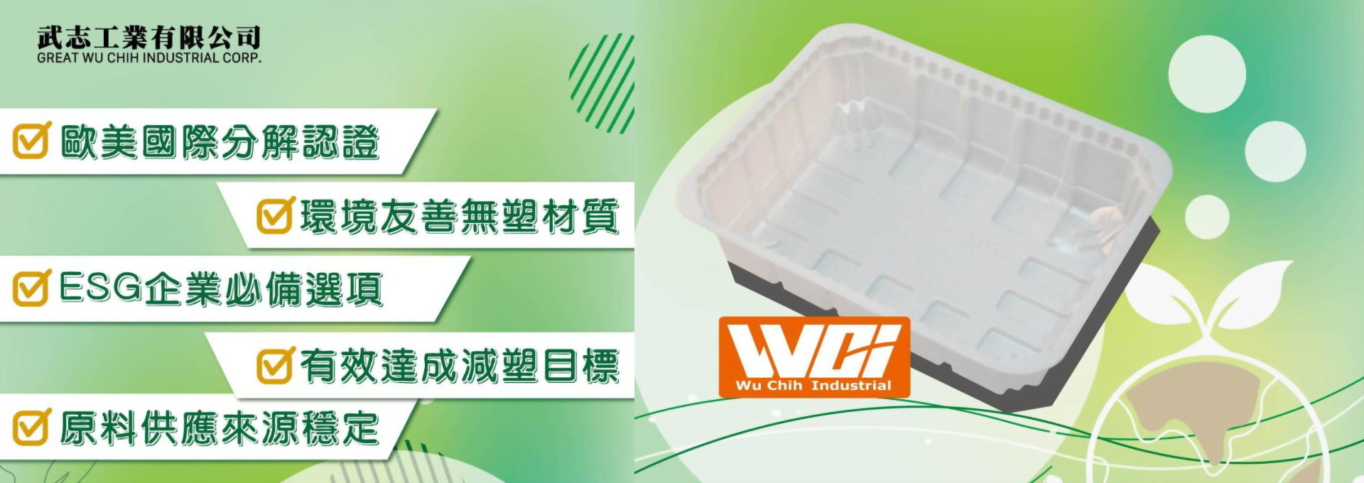 品牌名稱:武志工業有限公司 主要產品:包裝容器,包裝盒,包裝箱及包裝簍,泡殼包裝,緩衝材料,包裝紙 攤位號碼:南港一館 永續包材區 L0019